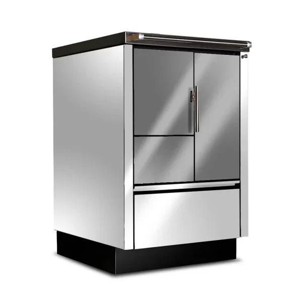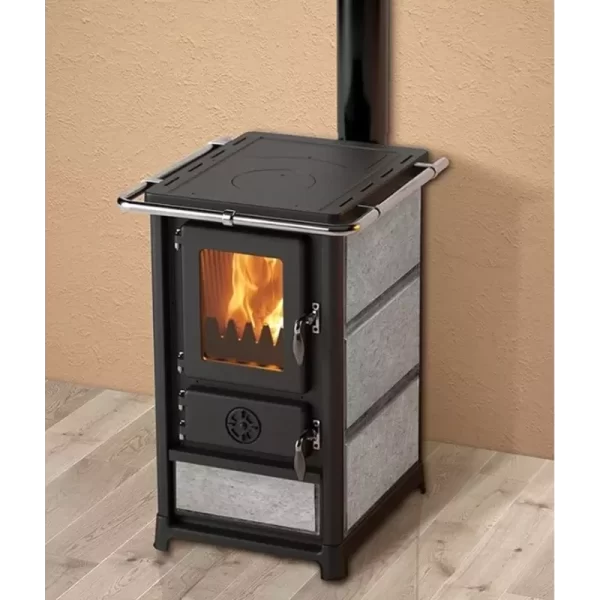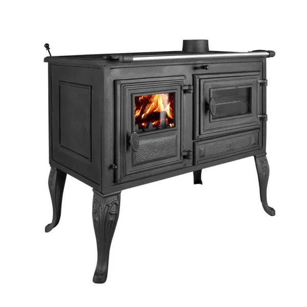 Poêle à bois. Puissance de chauffage de 16 kW. Poêle à combustible solide avec grand four. Modèle "Prity 2P50"